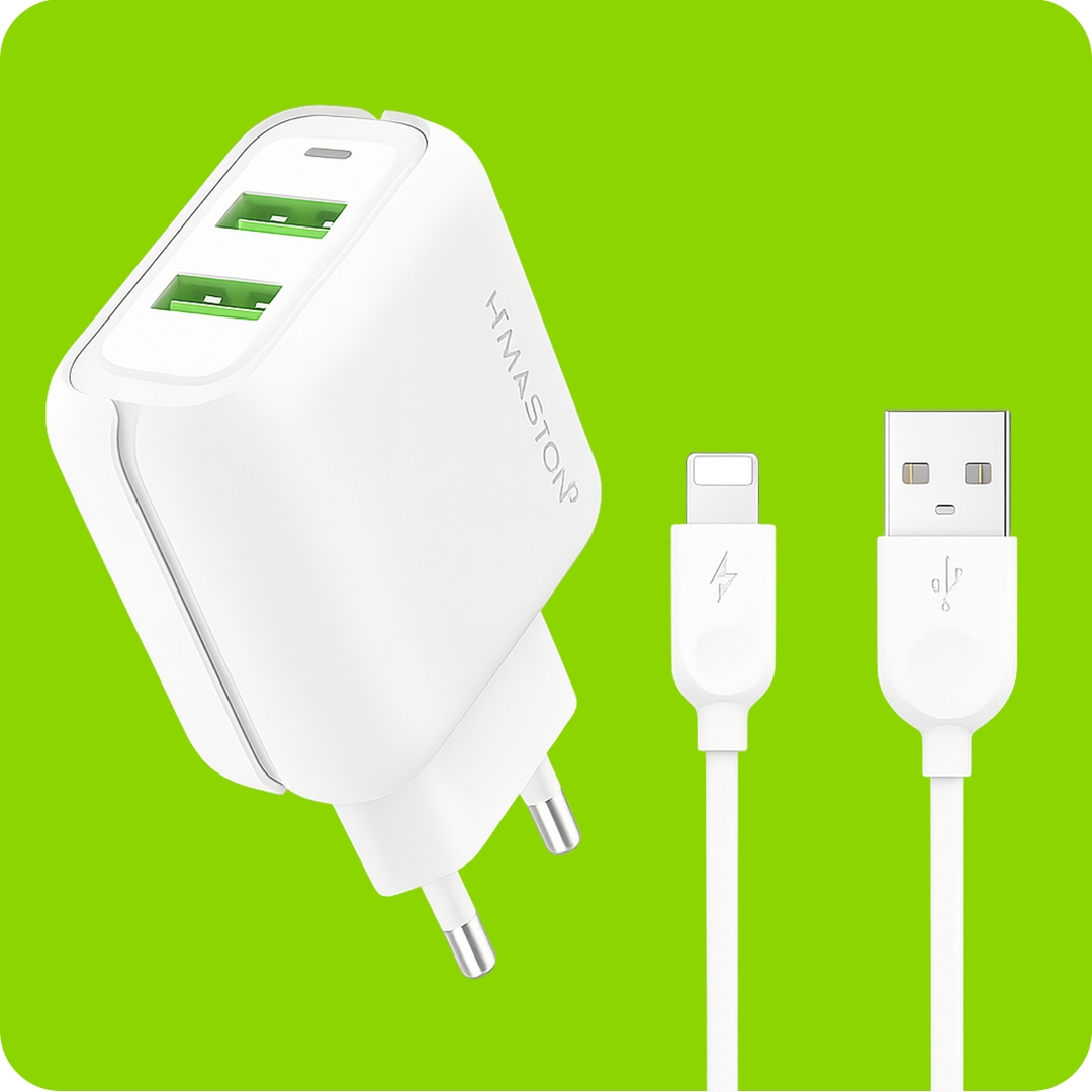 Saída TIPO IPHONE (Lightning) com carregamento rápido, ele reduz o tempo de carregamento e mantém a vida útil da bateria. Equipado com proteção contra sobrecarga, curto-circuito e superaquecimento, o carregador H’Maston protege seu celular de possíveis danos durante o carregamento. Leve e fácil de transportar, este carregador é perfeito para uso em casa, no trabalho ou em viagens.